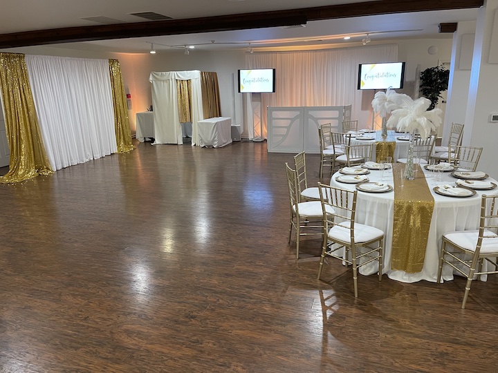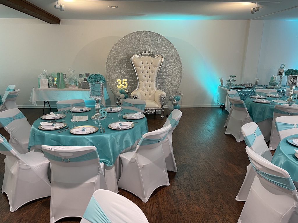 Vintage Hall Rental seats up to 100 with a Dance Floor. Our Rustic Room can fit up to 200. Here are a few Pictures of the hall decorated. We have many more samples here in the office. There are a few more here as well. Rustic Room pictures coming soon.